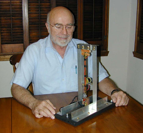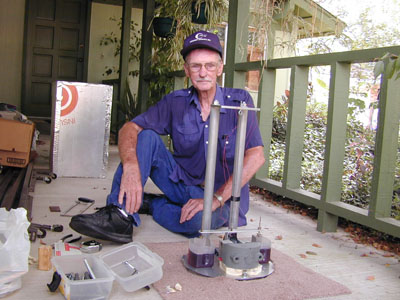 Frank Cooper with his home-made Shackleford-Gunderson seismograph sensor. The S-G is not being used at the present time.