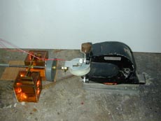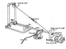 Note the ball bearing inserted into the end of the rod supporting the coil. The nickel chrome ball bearing rests upon a slightly convex nickel chrome polished steel surface. Click on the picture for a much larger image.