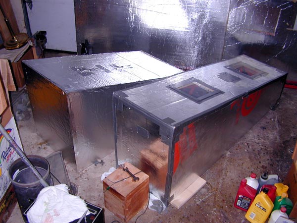 CoverThe Seismograph sensor is housed in a cover made of Celotex to keep out unwanted drafts. Two see-thru plastic windows have been incorporated in the top. The sensor, which I constructed in January, 1997, is in my garage.