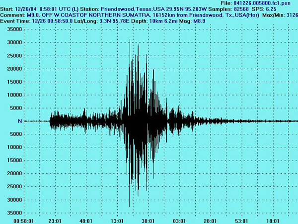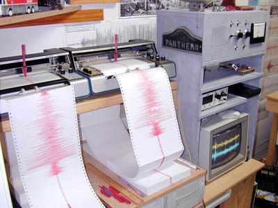(web address near the bottom of this page). The computer monitor shows the traces of the quake from my two seismic